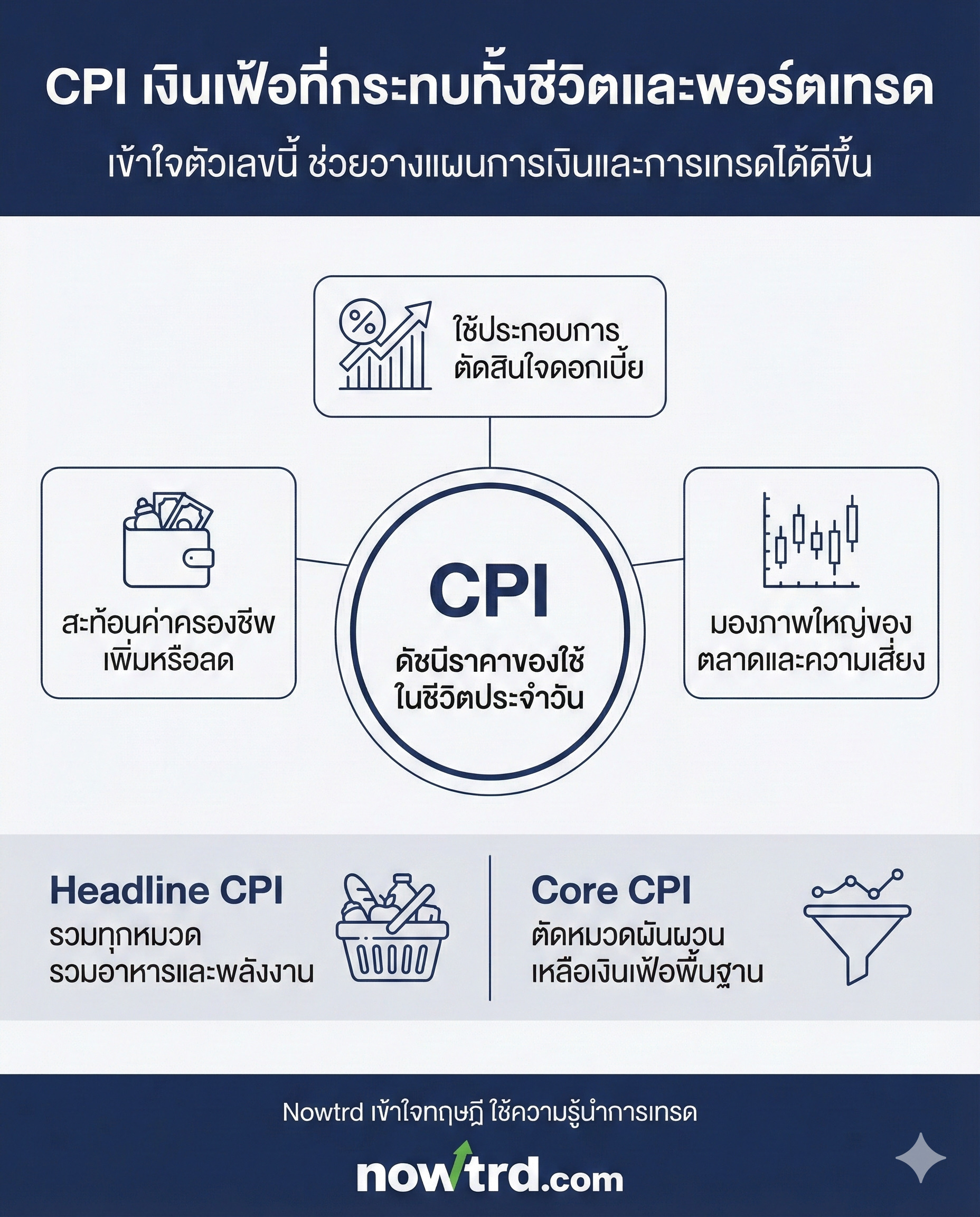 สมมติคุณเห็นข่าวว่า “คืนนี้มีประกาศ CPI สหรัฐ” หรือ “เช้านี้กระทรวงพาณิชย์รายงานเงินเฟ้อไทยออกมาแล้ว”